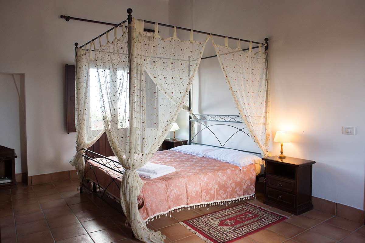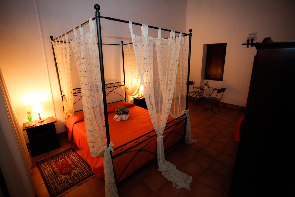 The Double Romantic Sea View room is a large room that can accommodate up to three people. On the second floor of the Norman Tower, it is furnished with lovely four-poster bed. From the bedroom it leads to the roof terrace from which you can enjoy the sea view, with the Egadi Islands and the beautiful surrounding countryside. The ideal solution for couples.